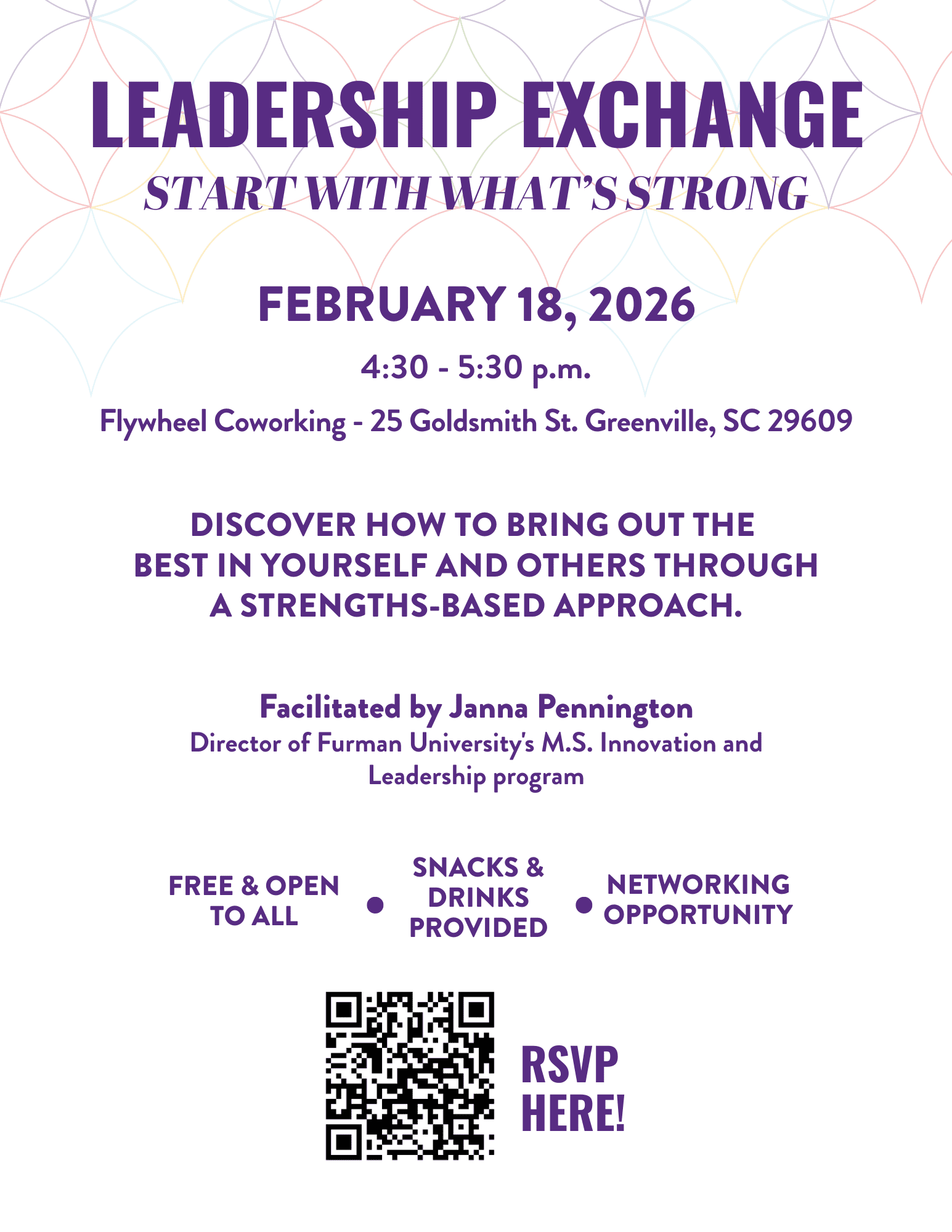 Furman’s Master of Science in Innovation & Leadership emboldens students to develop team-based solutions for challenges facing the industries, organizations and communities they serve. Through an interdisciplinary approach to the study of innovation and leadership, the program places sharp focus on self-reflection that drives leadership, critique that drives creativity and feedback that drives iterative processes and […]